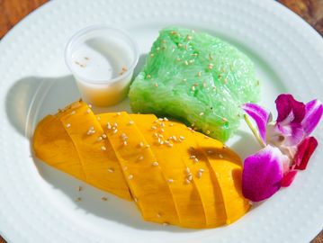 Sweet mango served with house made sweet sticky rice. topped with sweet coconut milk and sesame seeds