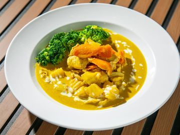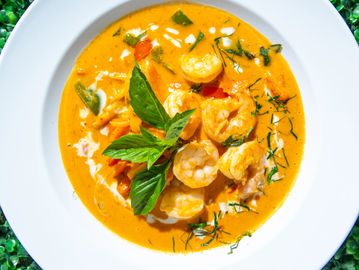 Coconut milk, bell pepper, onions, carrot, basil, bamboo shoot