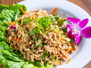 Chopped Chicken mixed with Thai dressing and roasted rice